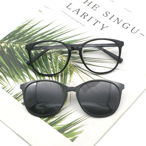 ファッションラウンド磁気サングラス女性眼鏡光学近視処方男性メガネフレーム高品質